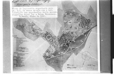 Inscrição: Plano do leprosário organizado pelo Dr. H.C. de Souza Arujo com a colaboração dos engenheiros Mario Ayrosa, Hippolyto Pujol jor e Palma Travassos. São Paulo, Junho de 1931.