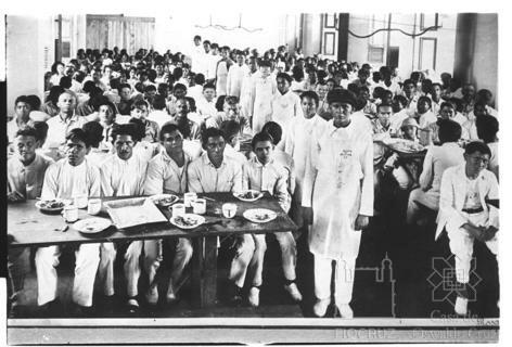 Pacientes no refeitório do leprosário