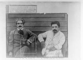 Oswaldo Cruz no ambiente de trabalho e em companhia de cientistas.
