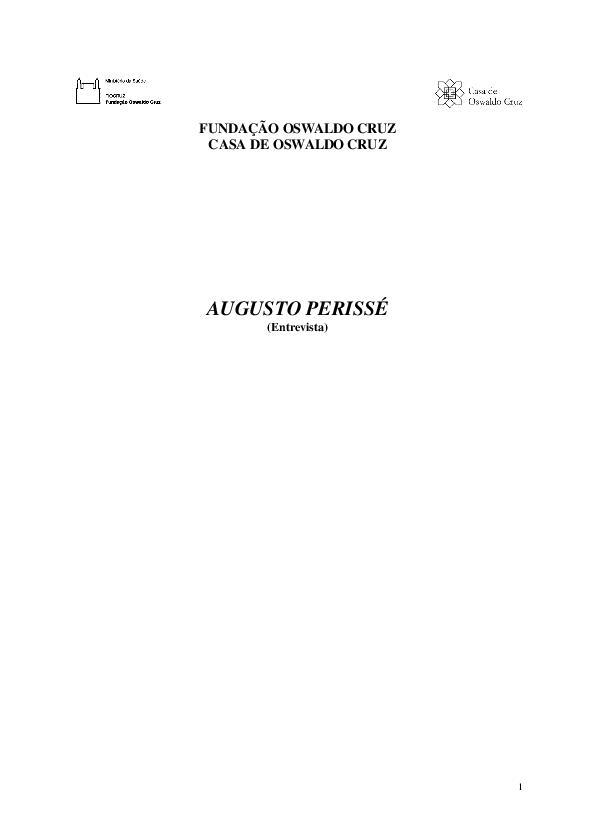 Augusto Perissé recomeçou seu trabalho em Manguinhos, em 1981, como bolsista do Conselho Nacional de Desenvolvimento Científico e Tecnológico (CNPq), prestando consultoria à Vice-Presidência de Desenvolvimento e retomando suas pesquisas sobre os Diplopodas e sobre química e bioquímica da hanseníase.