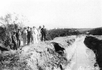 Belisário Penna (4º da direita para a esquerda) em visita a obras de hidrografia no Rio Pavuna no Rio de Janeiro (RJ)