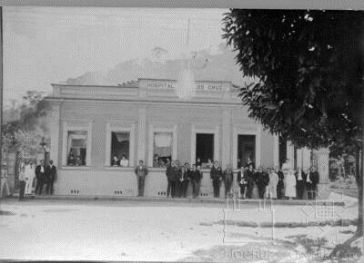 Belisário Penna (ao centro) e outros em frente ao Hospital Oswaldo Cruz
