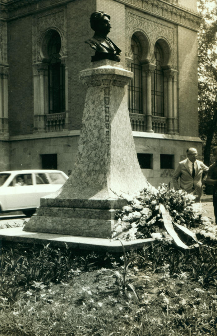 Busto em homenagem a Oswaldo Cruz em frente ao Pavilhão Mourisco