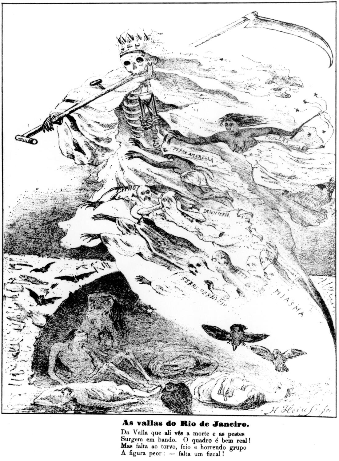 Charge sobre as várias epidemias que assolavam a cidade do Rio de Janeiro com o título "As vallas do Rio de Janeiro"