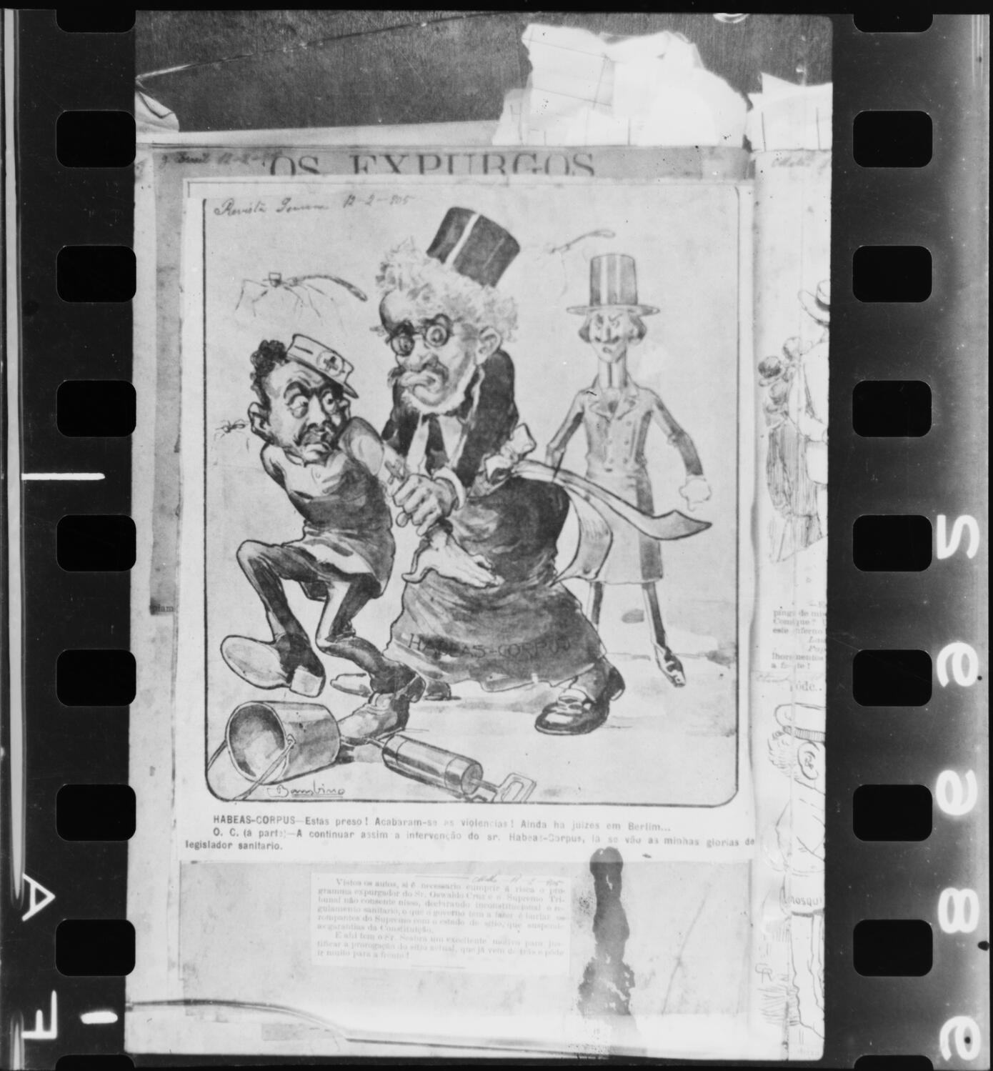 Charge sobre as manifestações de resistência por parte da população à obrigatoriedade da vacinação antivariólica com o título "Habeas Corpus". Rio de Janeiro