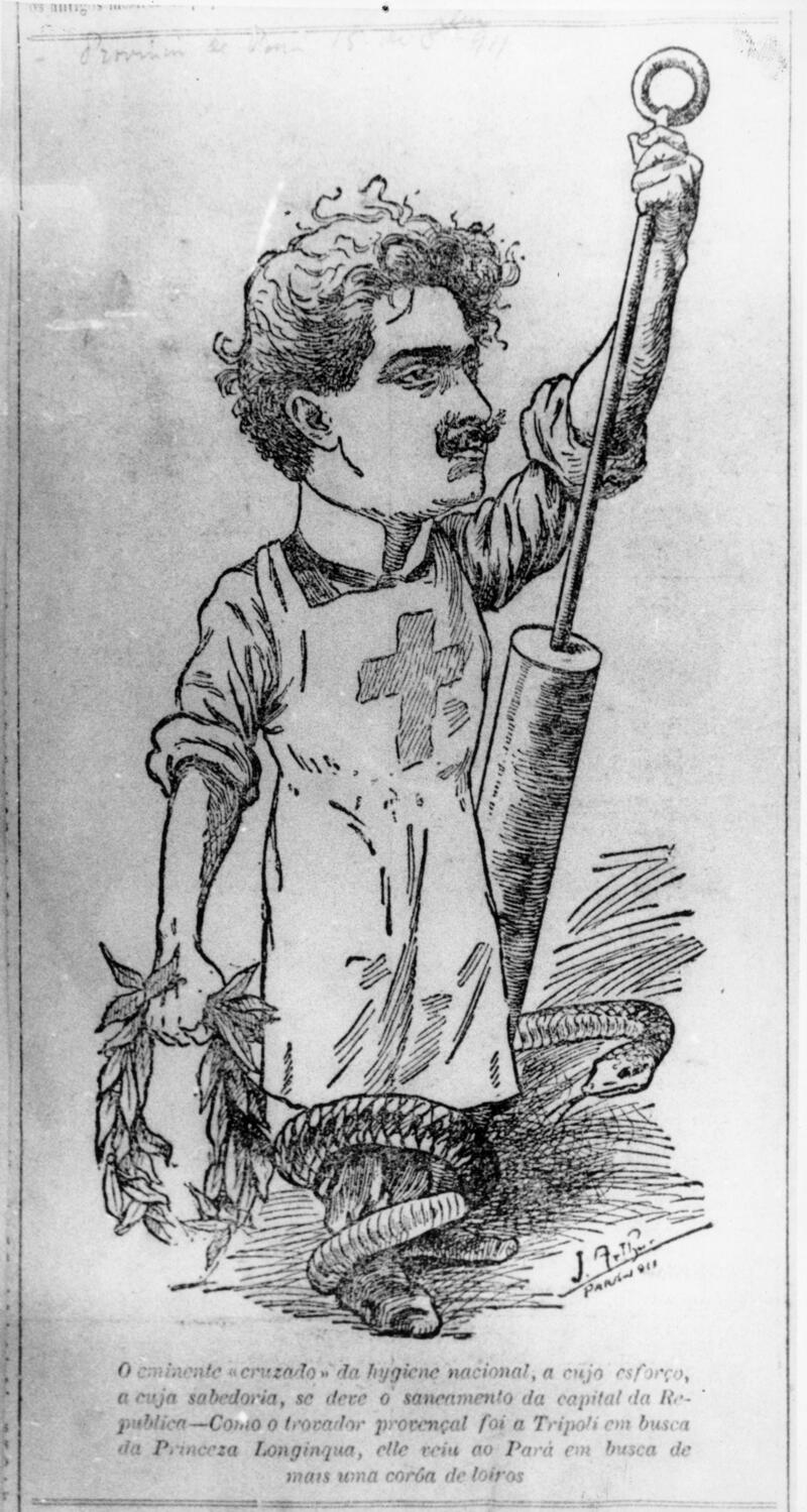 Caricatura "Oswaldo Cruz e o saneamento do Pará" publicada no periódico Província do Pará