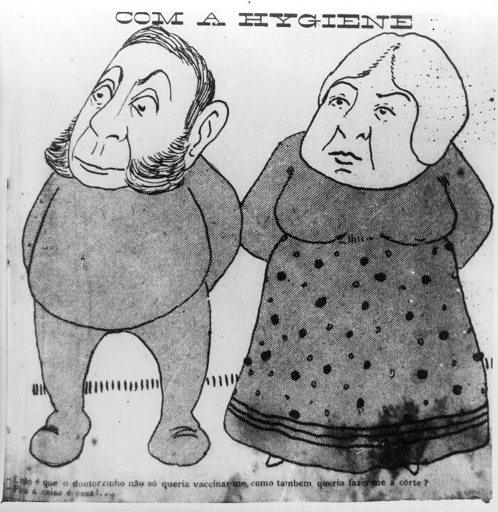 Charge alusiva à lei de obrigatoriedade da vacina antivariólica. "Com a Higiene". Rio de Janeiro. Imprensa Brasileira