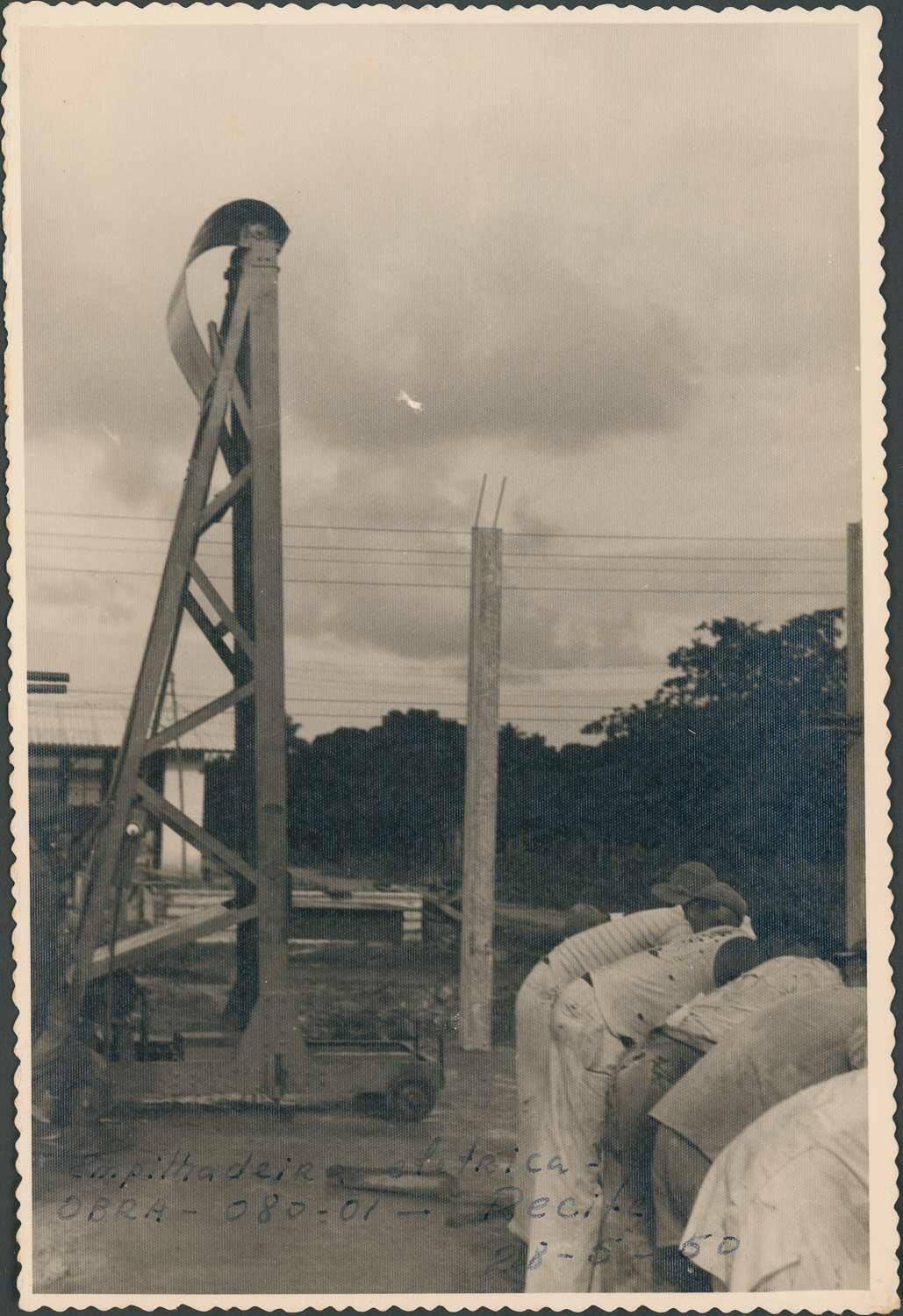 Empilhadeira elétrica nas obras do Sanatório de Sancho