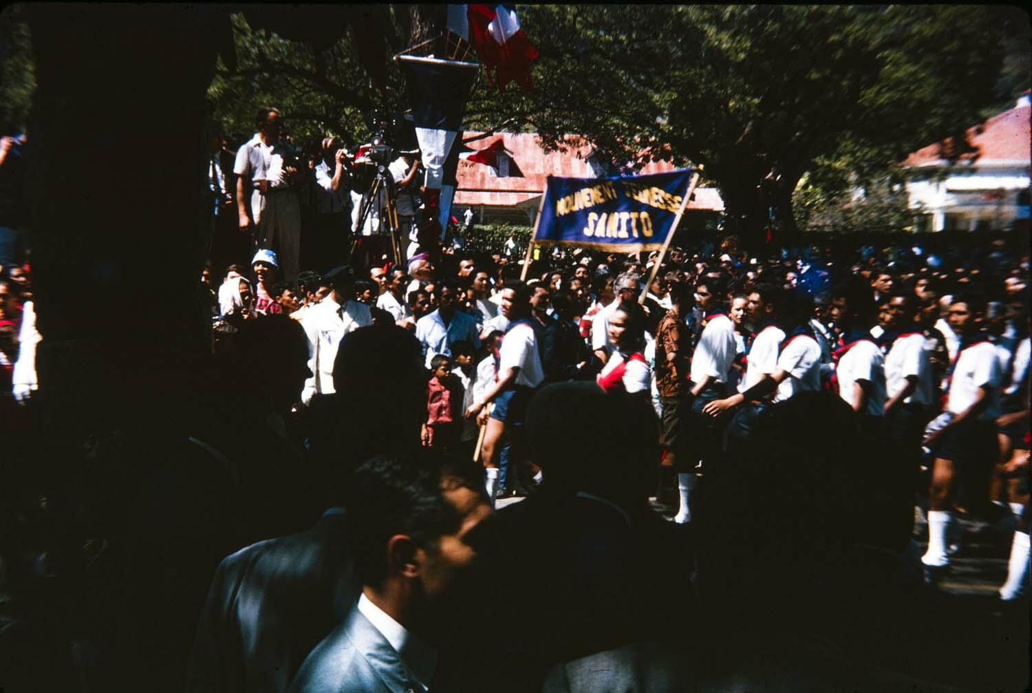 Desfile do Movimento Jovem da Igreja Sanito durante evento em Taiti, Polinésia Francesa