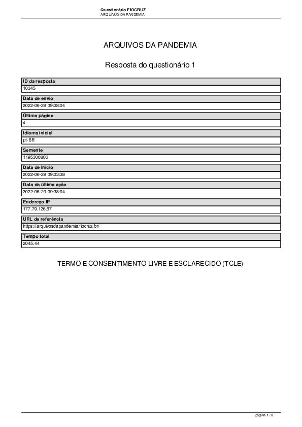 Documento textual contendo as respostas ao questionário "Arquivos da Pandemia: memórias da comunidade Fiocruz.".
