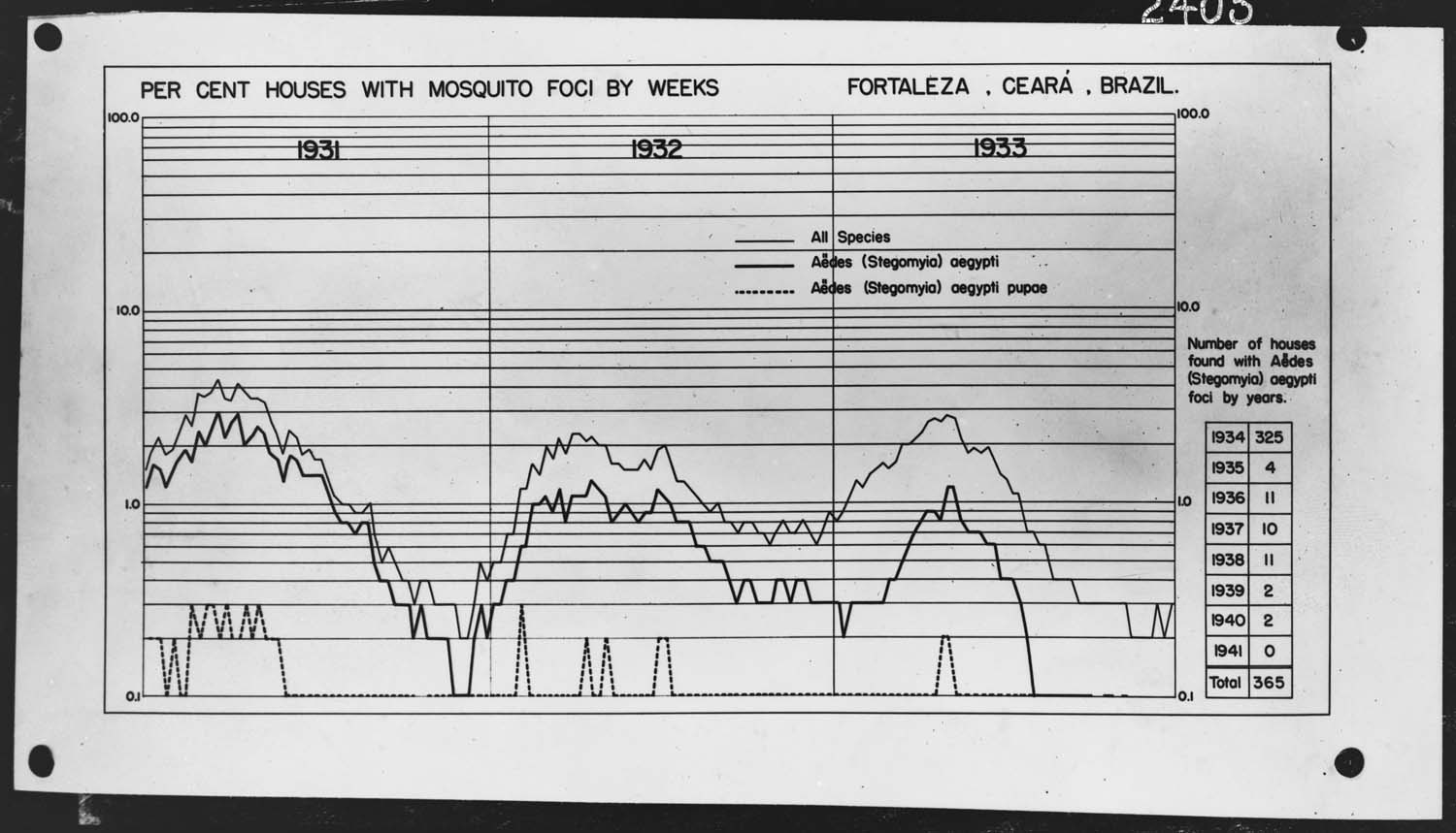 Gráfico mostrando porcentagem de casas com focos de mosquitos, por semana
