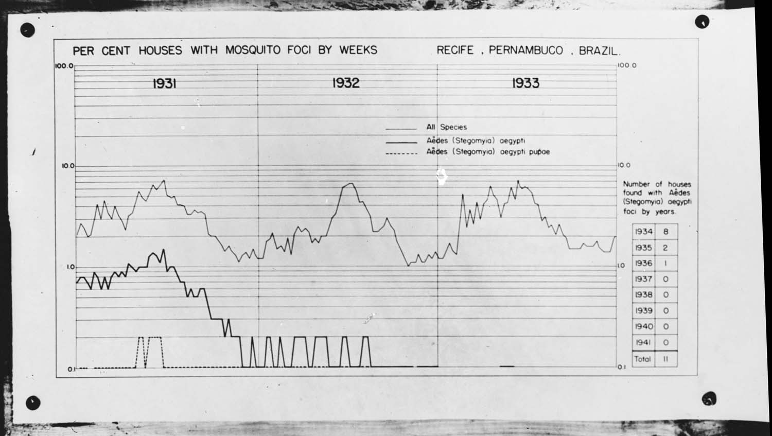 Assunto -Gráfico. Percent houses with mosquito foci by weeks. Recife, Pernambuco, Brasil