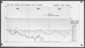 Assunto -Gráfico. Percent houses with mosquito foci by weeks. Recife, Pernambuco, Brasil