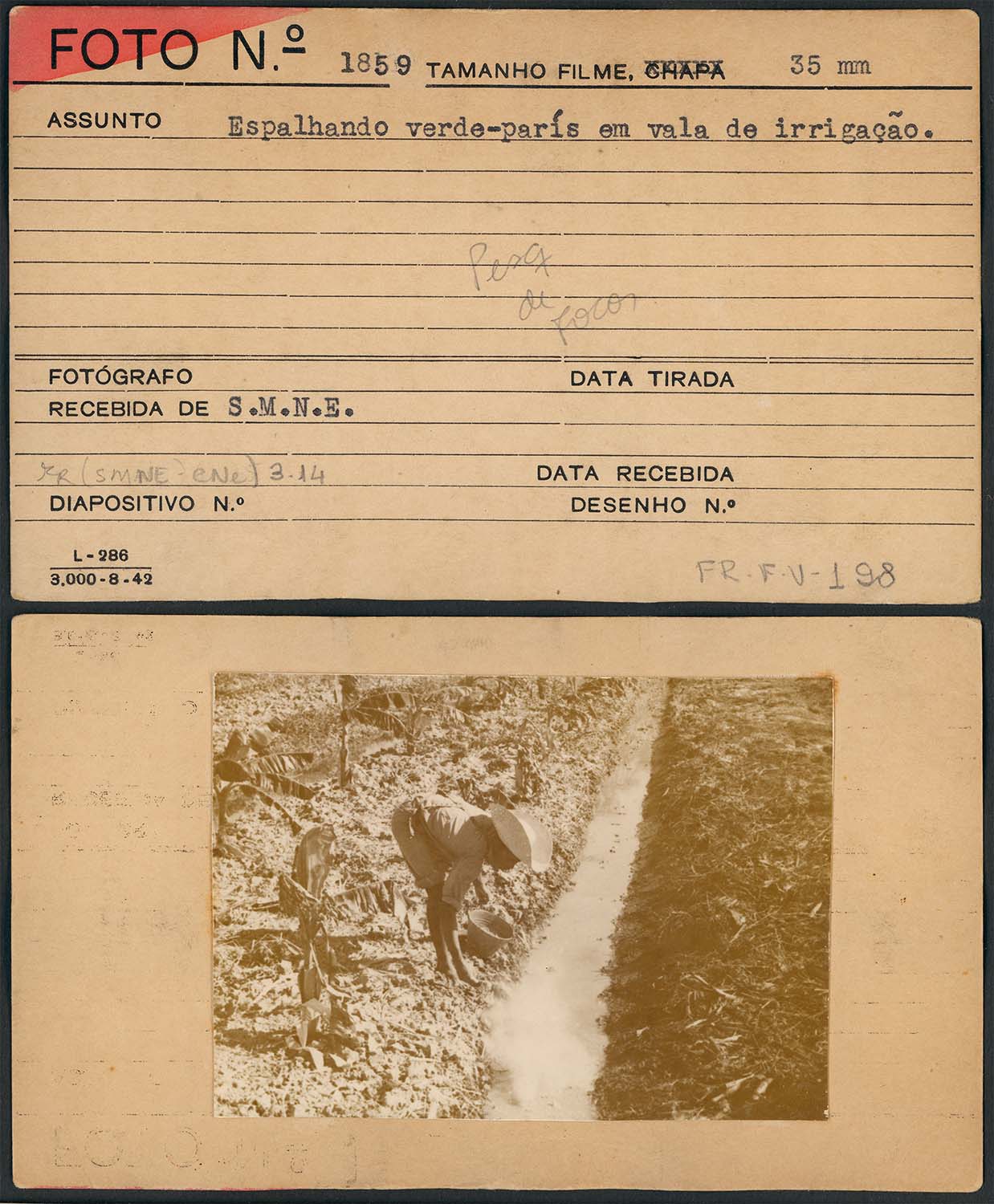 - Assunto - Espalhando verde-parís em vala de irrigação.