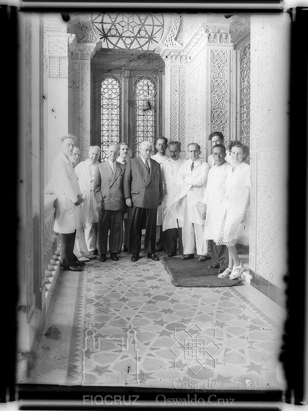 Vital Brazil entre médicos por ocasião de sua visita ao Instituto Oswaldo Cruz