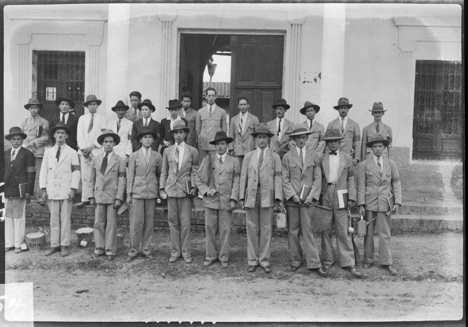 Grupo de inspetores em frente ao escritório do Serviço de Febre Amarela - Santa Cruz (Bolívia)
