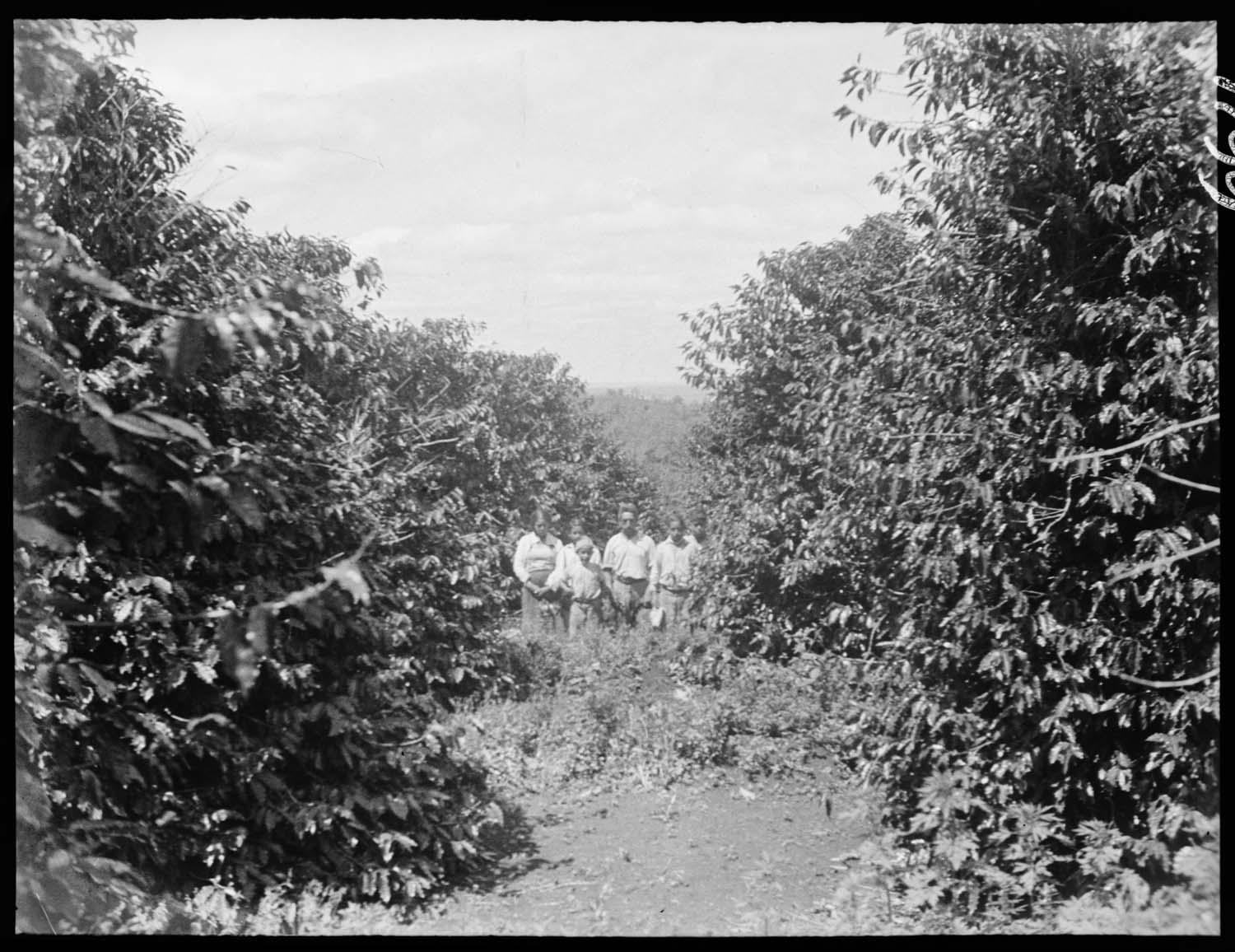 Grupo em meio à cafezal na Fazenda Santa Olímpia - Cambará (PR)