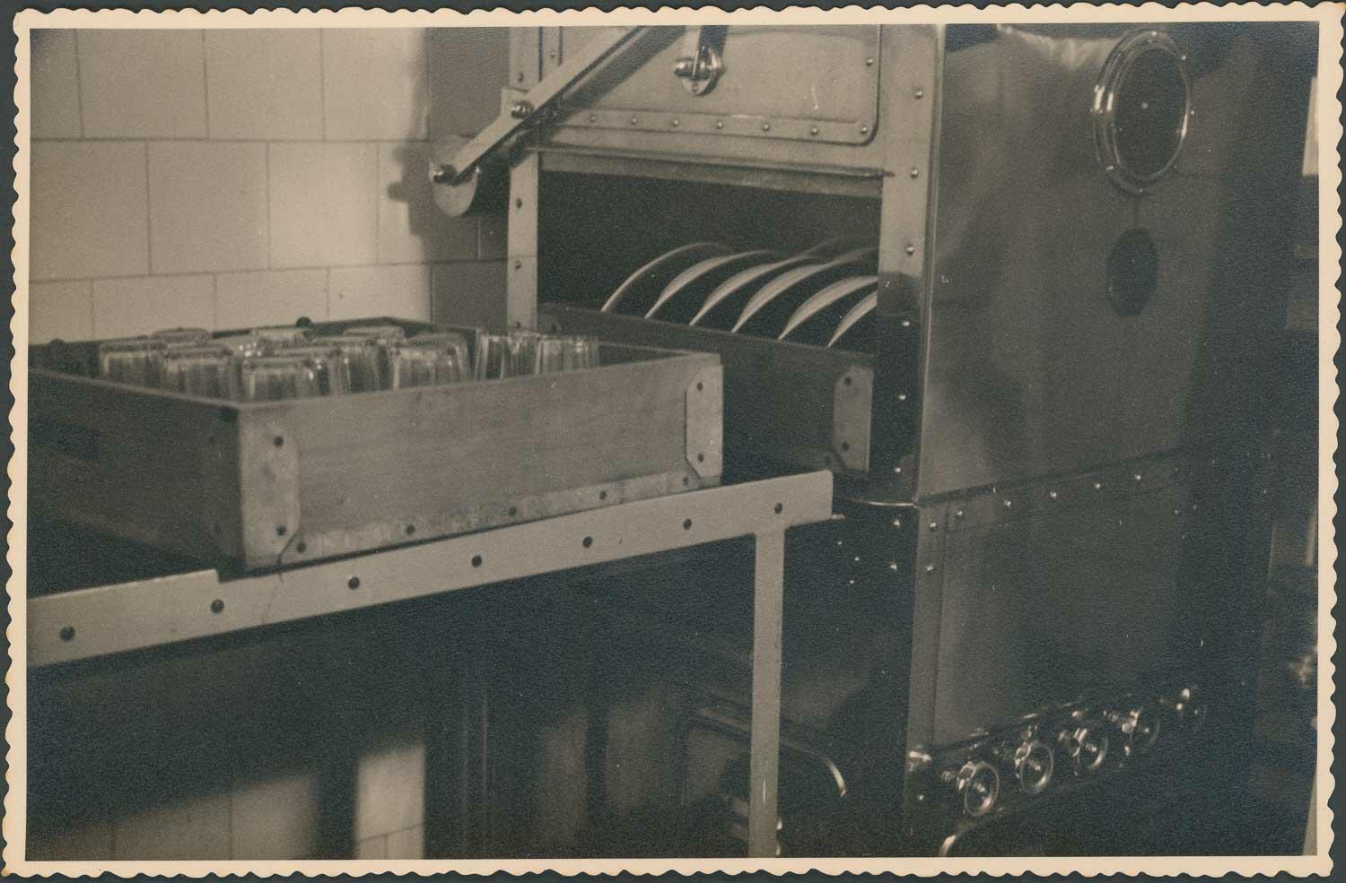 Máquina de lavar louça na cozinha do sanatório Getúlio Vargas