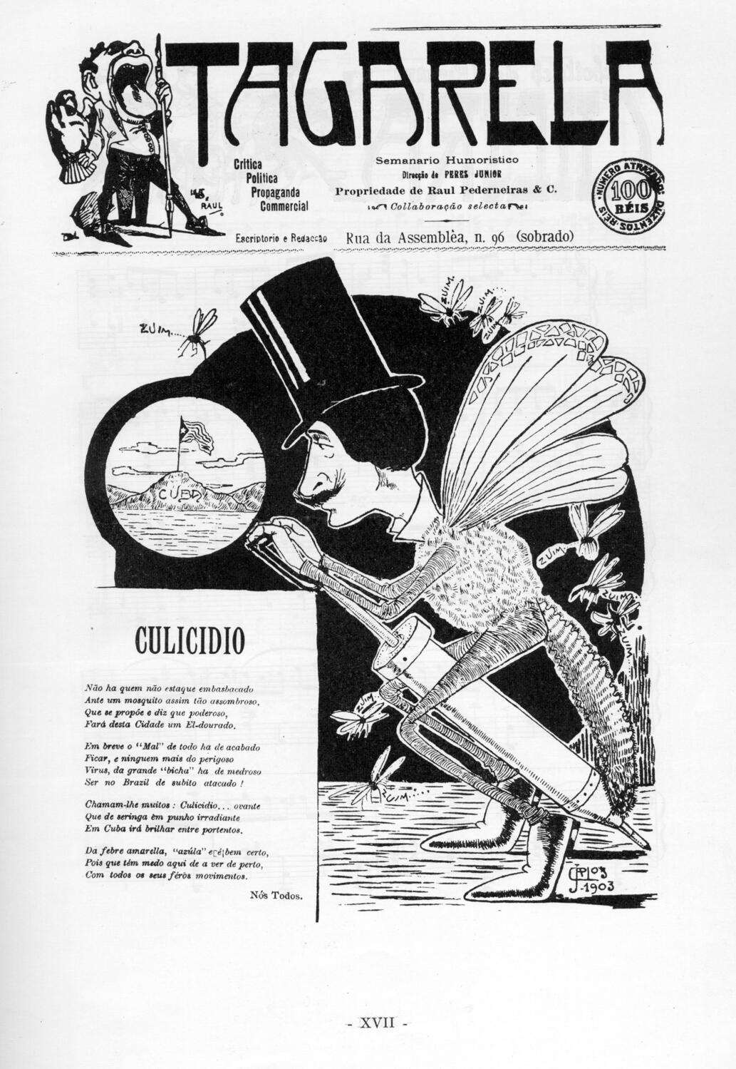 Oswaldo Cruz: campanha contra a Febre Amarela em Cuba. "Culicidio". Rio de Janeiro. Semanário Tagarela. Imprensa Brasileira