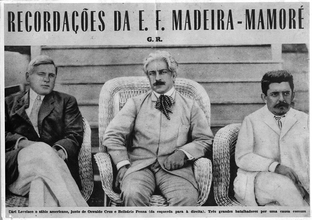 Oswaldo Cruz, Carl Lovelace e Belisário Penna, por ocasião de visita às obras da ferrovia Madeira-Mamoré