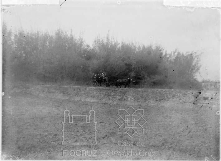Oswaldo Cruz, Stanislas von Prowazek, Gustav Giemsa e outros cientistas chegando a Manguinhos de charrete