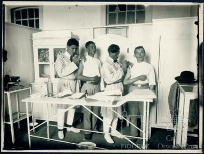 Pacientes recebendo atendimento médico na sala de injeções para homens do dispensário Eduardo Rabello