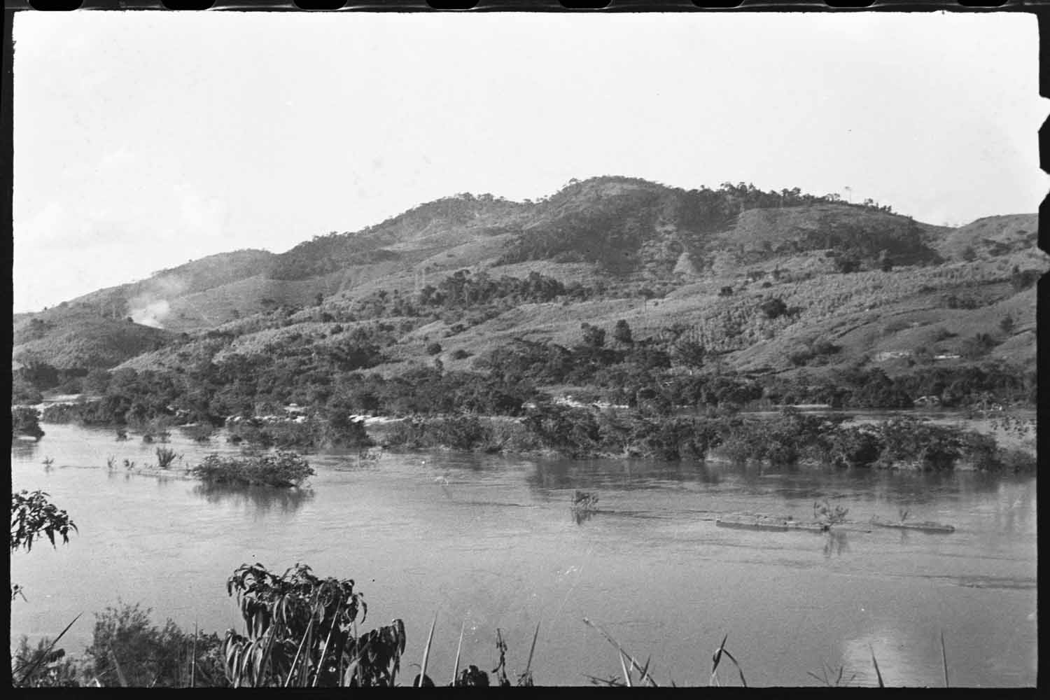 Rio Paraíba com colinas ao fundo, na Fazenda Paraíba, em Além Paraíba - Rio de Janeiro