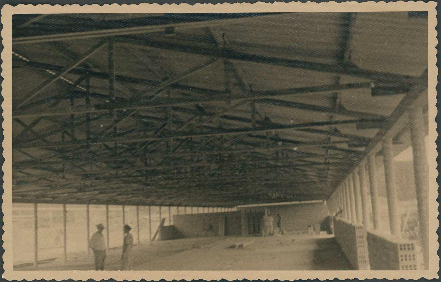Vista inferior do telhado de um dos pavilhões no Sanatório de São Sebastião durante as obras