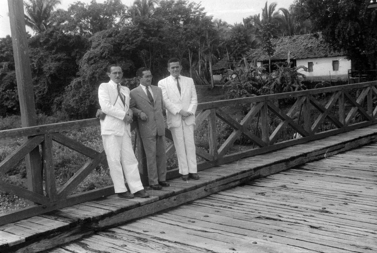Zenon Rocha, Carlos Eugênio Porto e outra pessoa em ponte sobre o Rio Poti